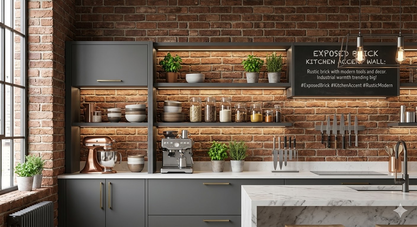 Exposed brick kitchen accent walls deliver rustic industrial warmth with timeless texture and character, making them a major trend resurgence in 2026. The raw, aged brick—red-orange terracotta tones, weathered grays,…