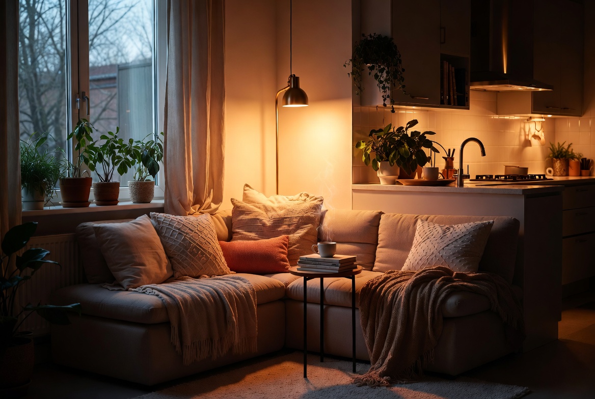 Hack — Use smart bulbs (2700K–3000K) for voice/app control—set “cozy mode” for evenings.