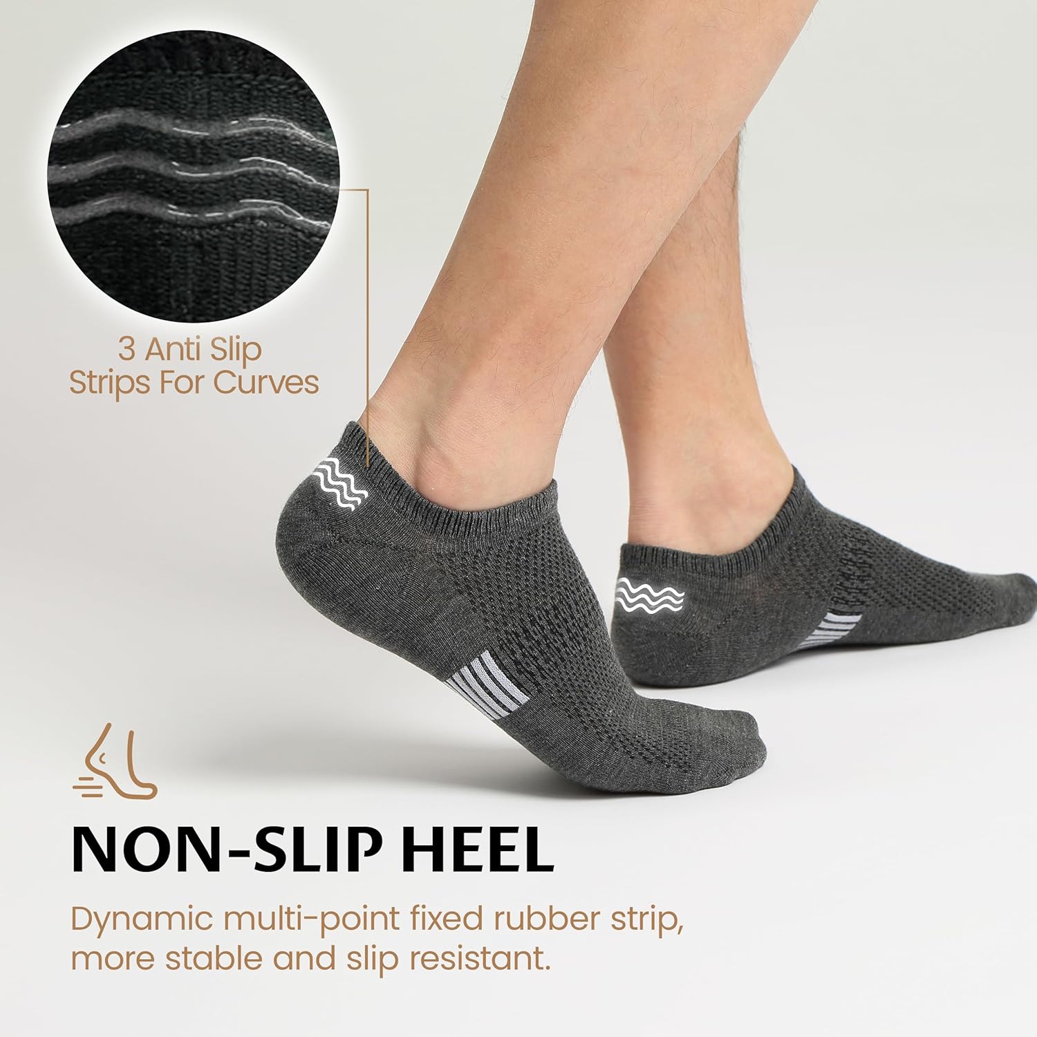 Stable, non-slip no show sock for unisex design: The heel of the no show sock is equipped with silicone anti-slip strips, and together with the reinforcement of the seamless edge of the sock opening on the heel, the double protection enhances the friction between the boat sock and the foot. No matter how you move, it can effectively prevent the heel from slipping, solving the problem of many invisible socks slipping off.